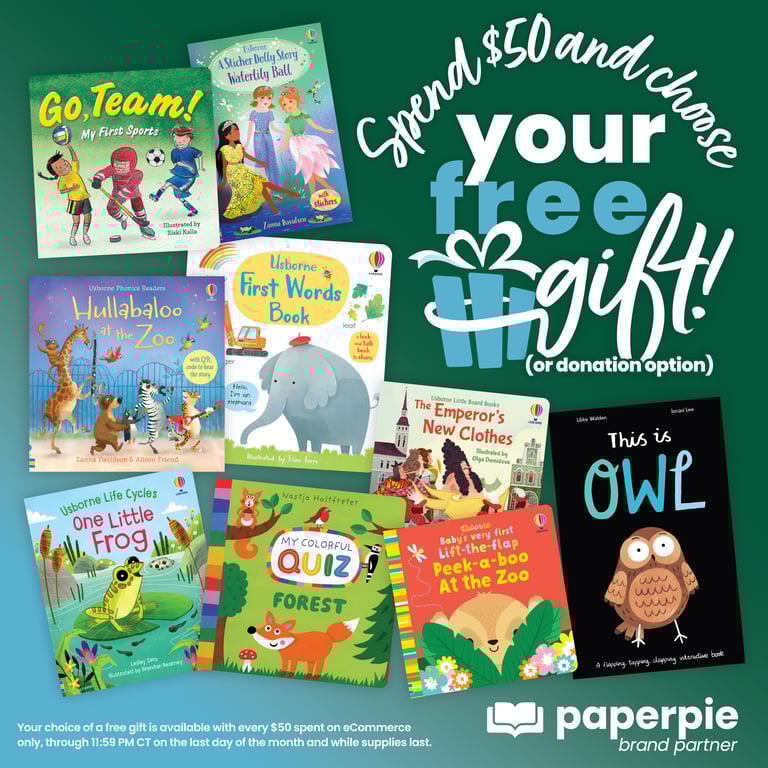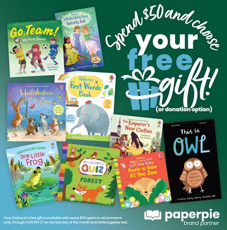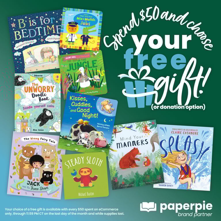 Don't want a free book? You can select a $10 Book Donation as your Free Gift option. When chosen, PaperPie will donate $10 in products to our partner organization, Toys for Tots - spreading the joy of reading even further!