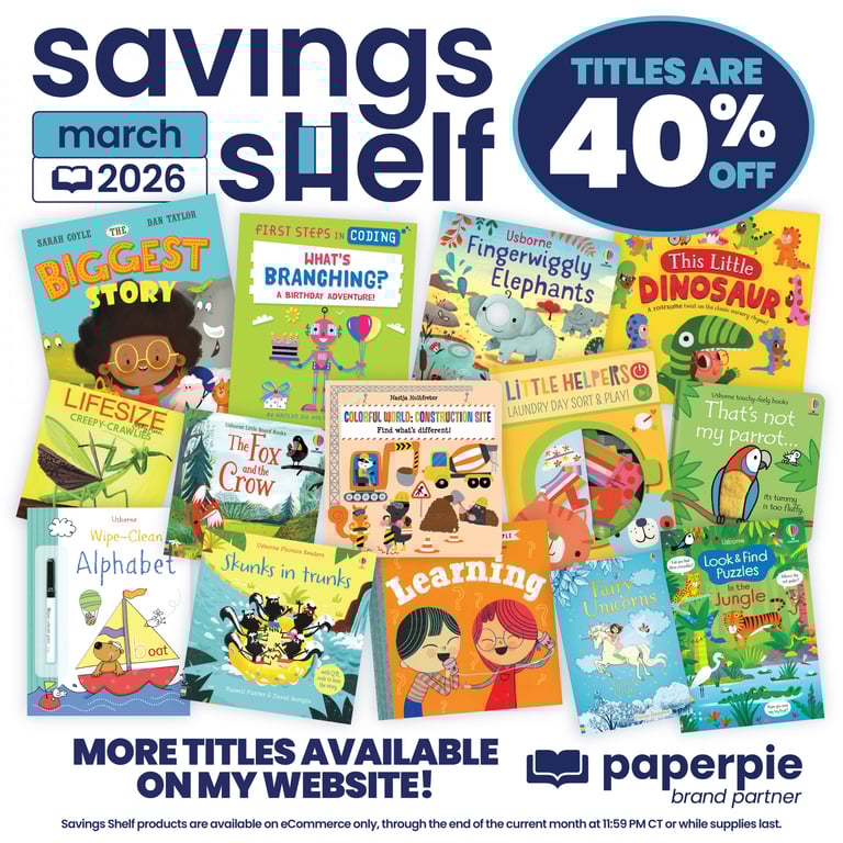 Savings Shelf category is 40% off this month! This month there are 20 titles at 40% off which include some of my top selling books!